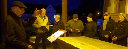 Es ist zwar kalt aber es war heute ruhiges trockenes Wetter. Bemernkenswert ist, dass fast alle Sänger dabei sind.