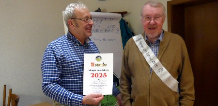 Und der Sänger des Jahres 2025 ist Günther, Heinz, Sänger 2024, legt die Schärpe um.