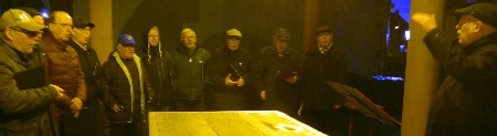 Es ist zwar kalt aber es war heute ruhiges trockenes Wetter. Bemernkenswert ist, dass fast alle Sänger dabei sind.
