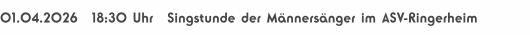 01.04.2026 18:30 Uhr Singstunde der Männersänger im ASV-Ringerheim