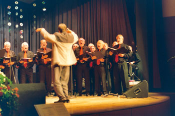 Nun ist der Männerchor an der Reihe. Im Vordergrund unser Dirigent Werner Utmelleki.